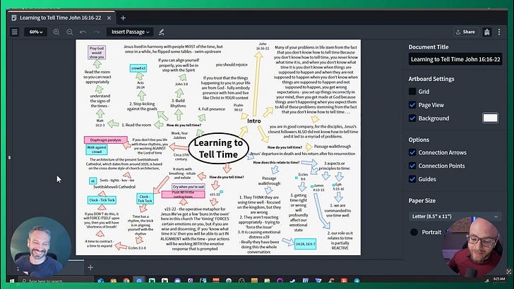 What his Canvas mind maps, custom Passage Guide collections, and Read Aloud rhythm can teach the rest of us about calm, focused sermon prep.